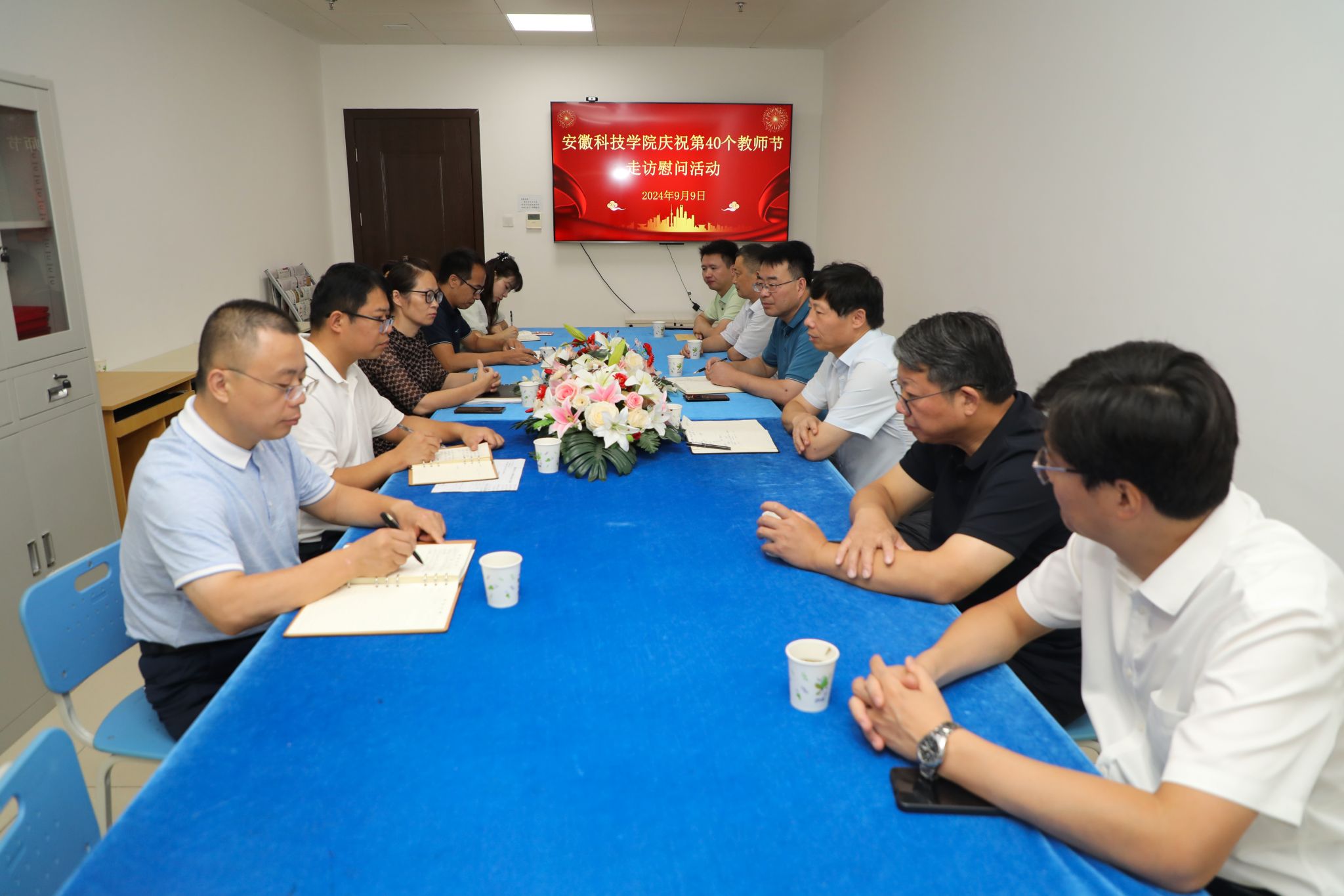 在第40个教师节来临之际,校党委书记时伟,党委委员、副院长李升和,党委委员、副院长赵伟峰,在组织部、人事处、工会等部门负责人陪同下,先后来到凤阳校区和龙湖校区走访慰问高层次人才代表,向他们致以诚挚的问候和节日的祝福。