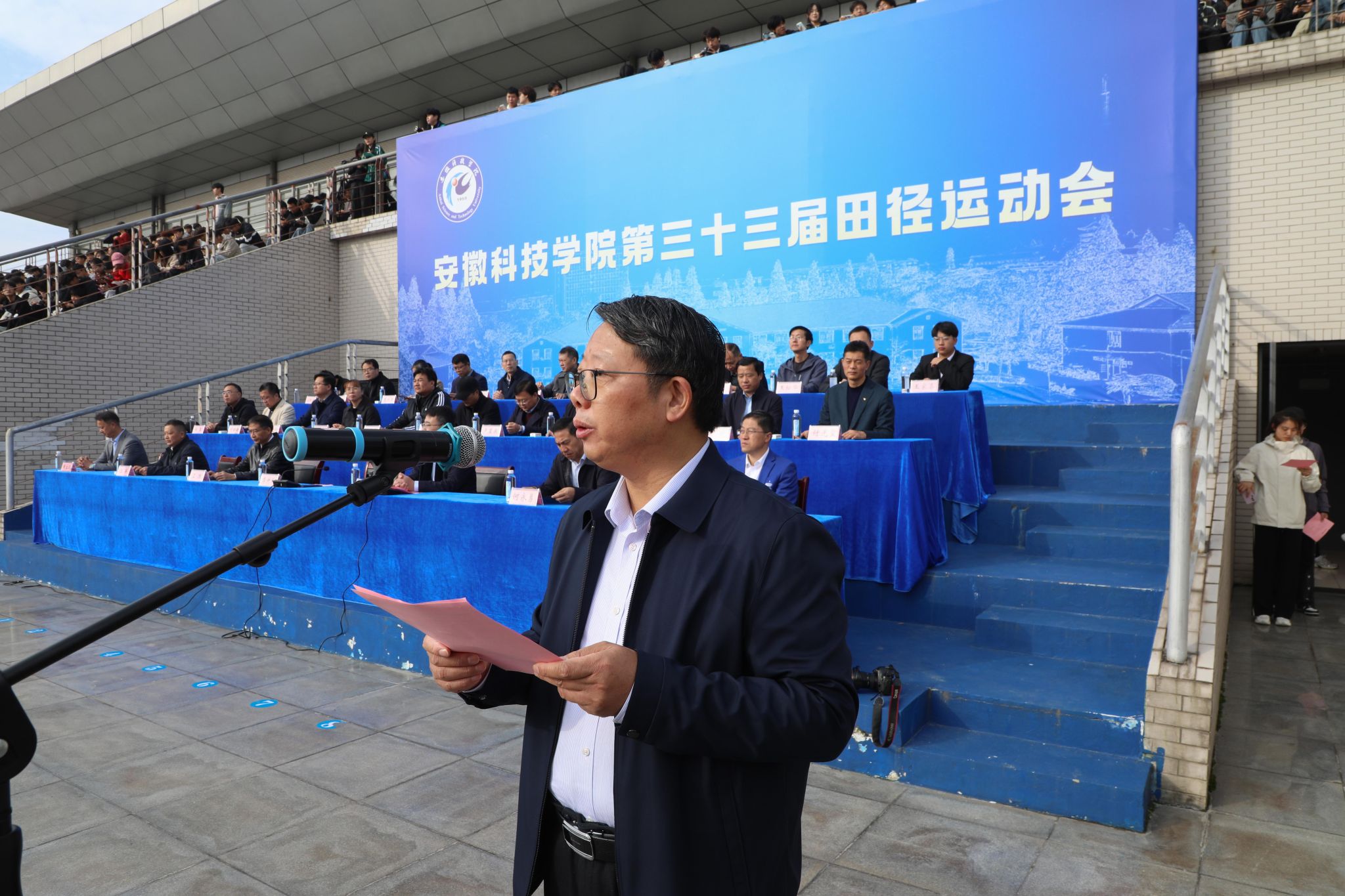 深秋燃梦,赛场逐风。10月25日,我校第三十三届田径运动会在凤阳校区西区运动场开幕。党委副书记、院长李升和,党委委员、副院长赵伟峰,党委委员、机关党委书记卫胜,党委委员、党委宣传(统战)部部长何永勇等出席开幕式。各二级学院、相关职能部门负责人和全体运动员、裁判员、教练员、领队、师生代表参加开幕式。开幕式由赵伟峰主持。