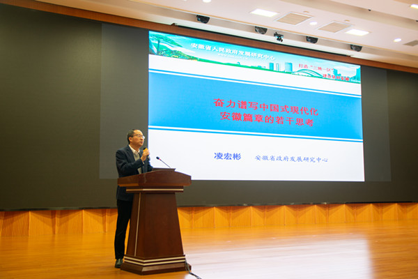 凌宏彬围绕“奋力谱写中国式现代化安徽篇章的若干思考”做主旨报告。他提出要把握辩证关系,即把握全面深化改革与中国式现代化的辩证关系,做到政治自觉;要作答重大问题,即六个新提升、六个当先锋的“七大问题”,做到行动自觉;要探究方式方法,强化系统集成,尊重基层首创精神,做到思想自觉。