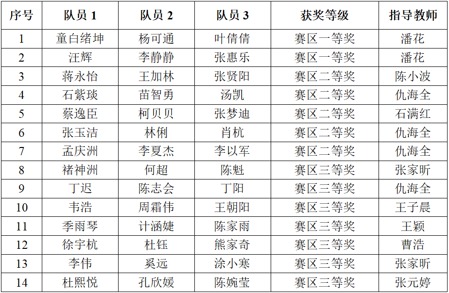 11月15日,2024年全国大学生数学建模竞赛安徽赛区成绩揭晓,我校学子斩获省级一等奖2项,二等奖5项,三等奖7项,信息与网络工程学院潘花老师获优秀指导老师,取得了我校学生参加该项竞赛以来的最好成绩。