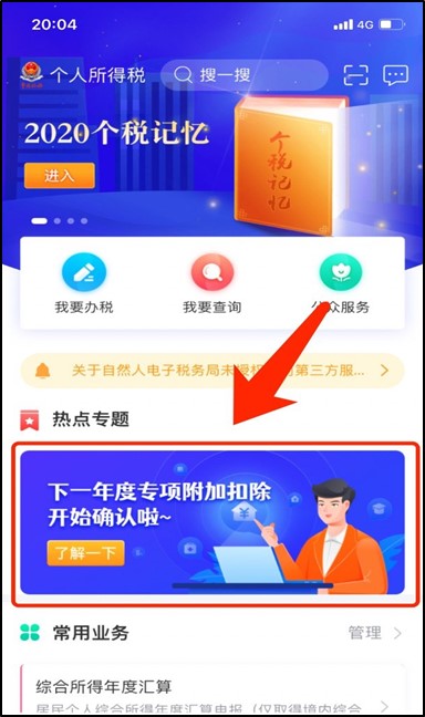 如果你是首次享受个税专项附加扣除,请在app首页【常用业务】进行专项附加扣除填报。