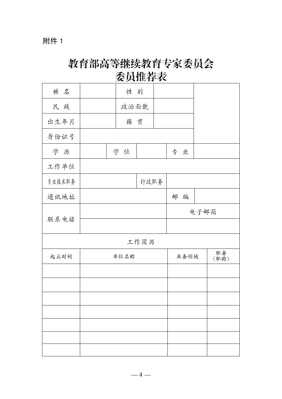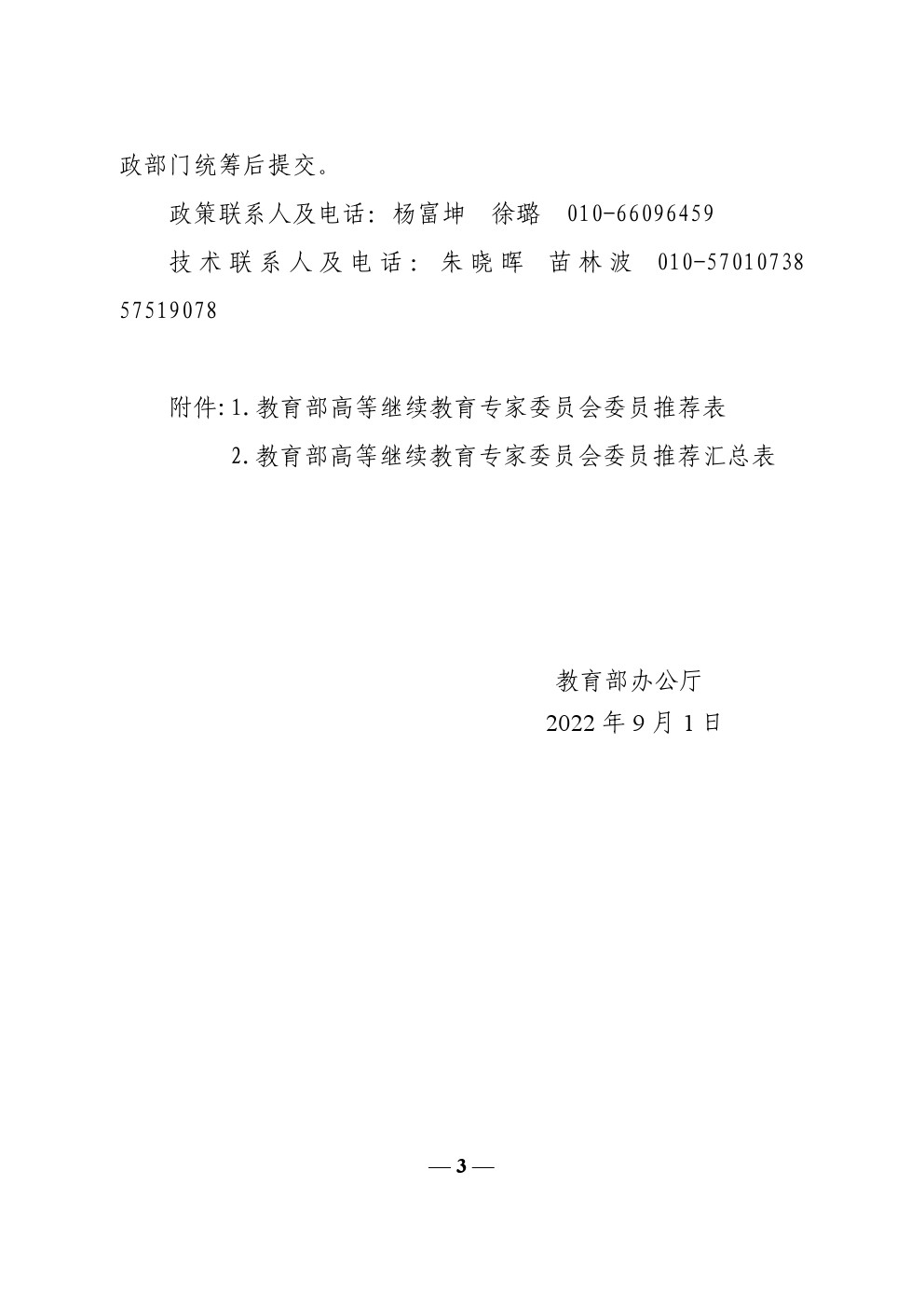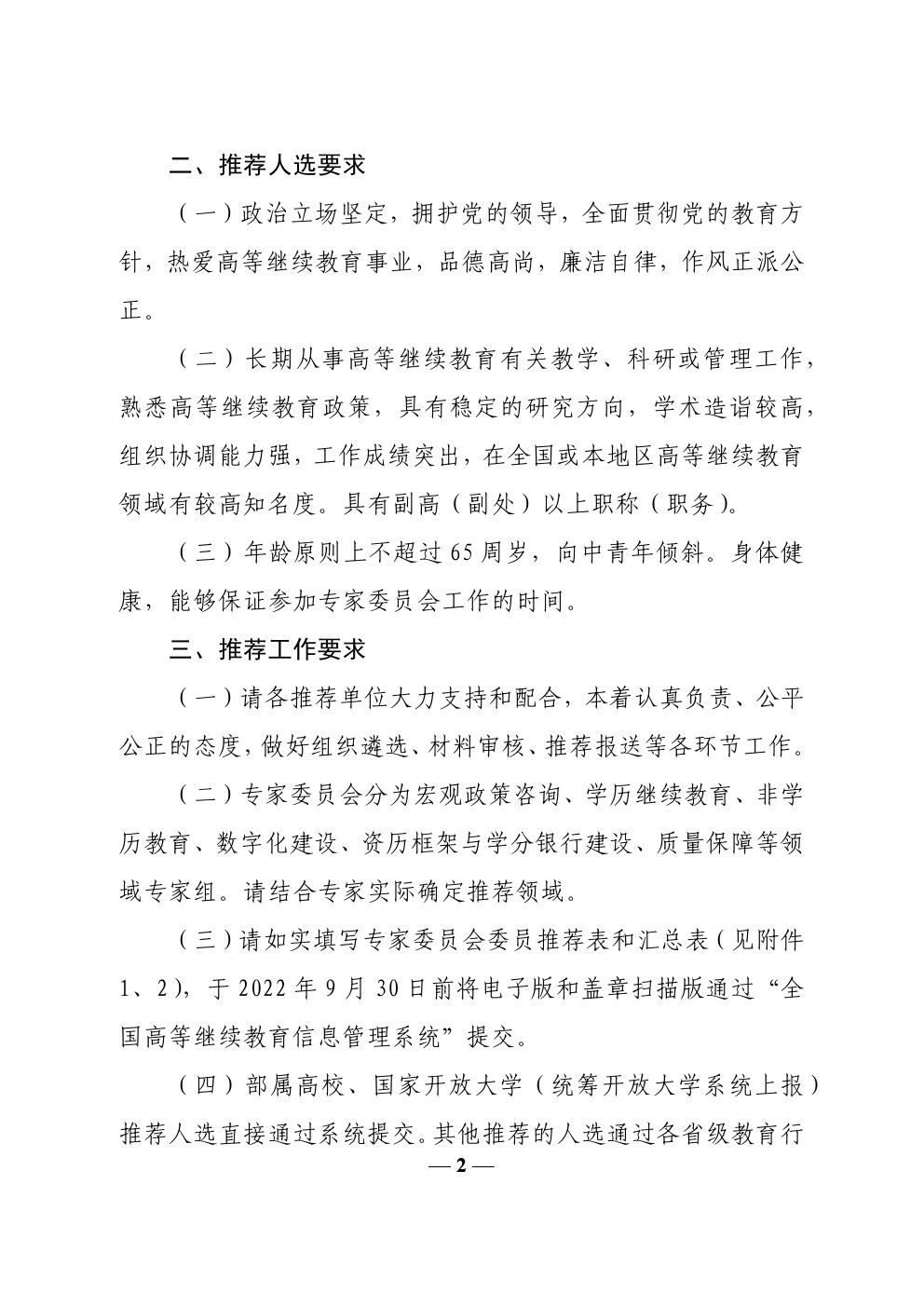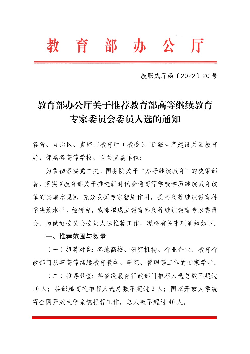 教育部办公厅关于推荐教育部高等继续教育专家委员会委员人选的通知