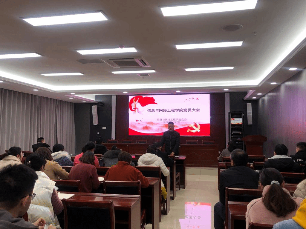 3月17日下午,信息与网络工程学院在西附楼111召开党员大会,学习贯彻学校2021年全面从严治党暨党风廉政建设工作会议精神。学院党委书记王振其、院长余宏杰、正处级组织员周向群、副书记韦乃学、副院长何恩节以及全体党员参加会议,会议由王振其主持。