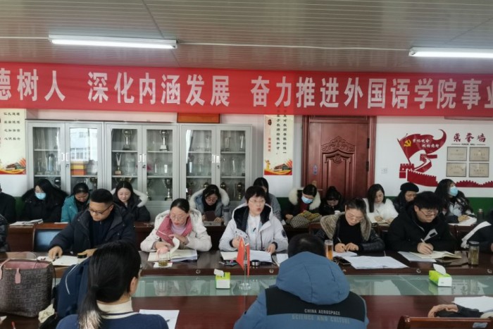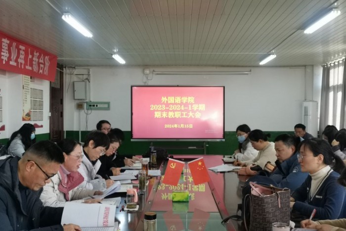 1月15日上午,外国语学院在学知楼五楼学院会议室召开本学期全体教职工大会,学院全体教职工参加会议。会议由院长刘萍主持。