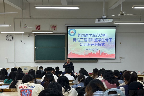 4月17日下午,外国语学院在求知楼A座105教室举行2024年青马工程暨学生骨干培训班开班仪式。学院党委副书记张海亮出席并讲话。开班仪式由学院团委副书记宋兵兵主持。