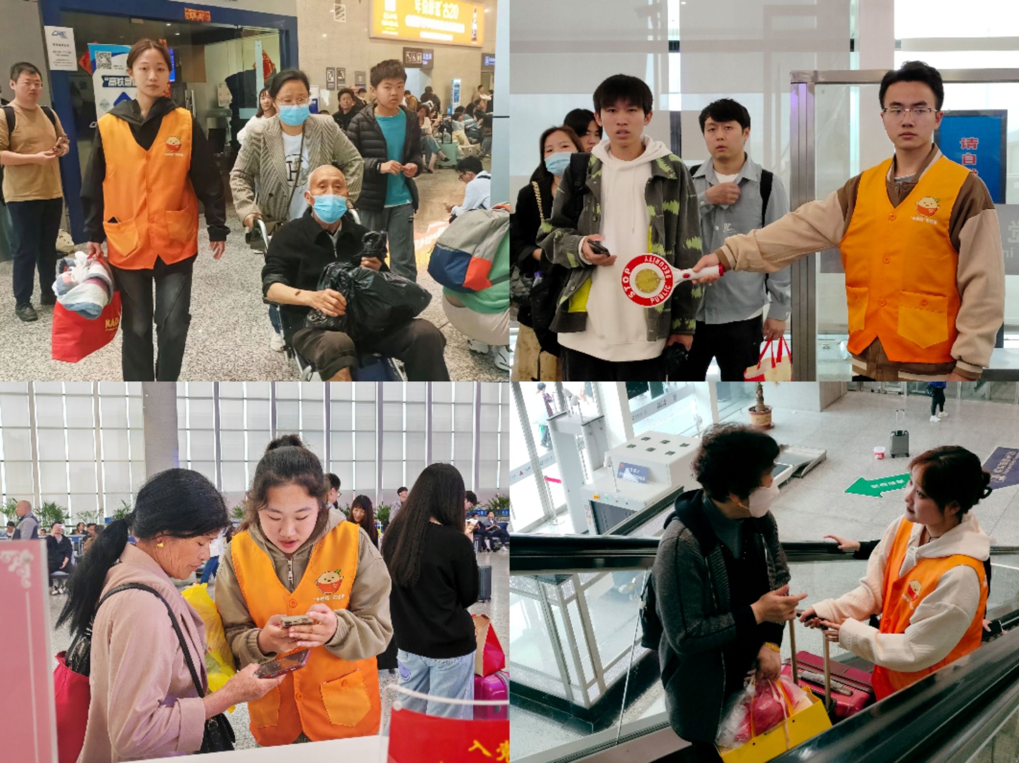 蚌埠高铁站是京沪高速铁路与京福高速铁路、合蚌高速铁路的联结点,是安徽省规模较大、辐射面广的高铁枢纽。随着蚌埠第二届文化旅游美食季的开幕,车站客运压力骤增。为缓解车站客运人员工作压力,展现青年学子志愿服务风貌,为蚌埠市旅游文化名片再添一抹光彩,化学与材料工程学院团委组织160余名志愿者在蚌埠高铁站设立志愿服务岗位7个,从旅客购买车票、检票进站、行李安检到出站验票,建立起全链条、不断线的志愿服务体系。志愿者们用自己的热情服务帮助老年人解决在信息化乘车过程中出现的各类困扰,帮助行李较多的旅客解决行动缓慢的问题,帮助偕老带幼的旅客解决临时看顾的问题,也为很多来蚌旅游的旅客提供出站交通指引。他们还对预约的重点旅客提供全方位服务,确保他们走的安心,坐的放心。
