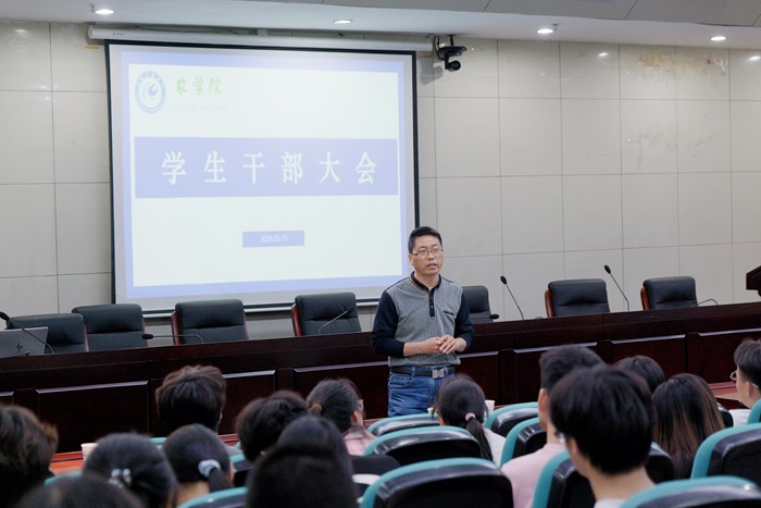 为进一步加强学生干部教育培养,提高学生干部的综合素质和能力水平,5月15日下午,农学院党委副书记张轶辉主持召开学生干部会布置近期学生工作。学院有关教师,非毕业班班长、团支书、学委参加会议。