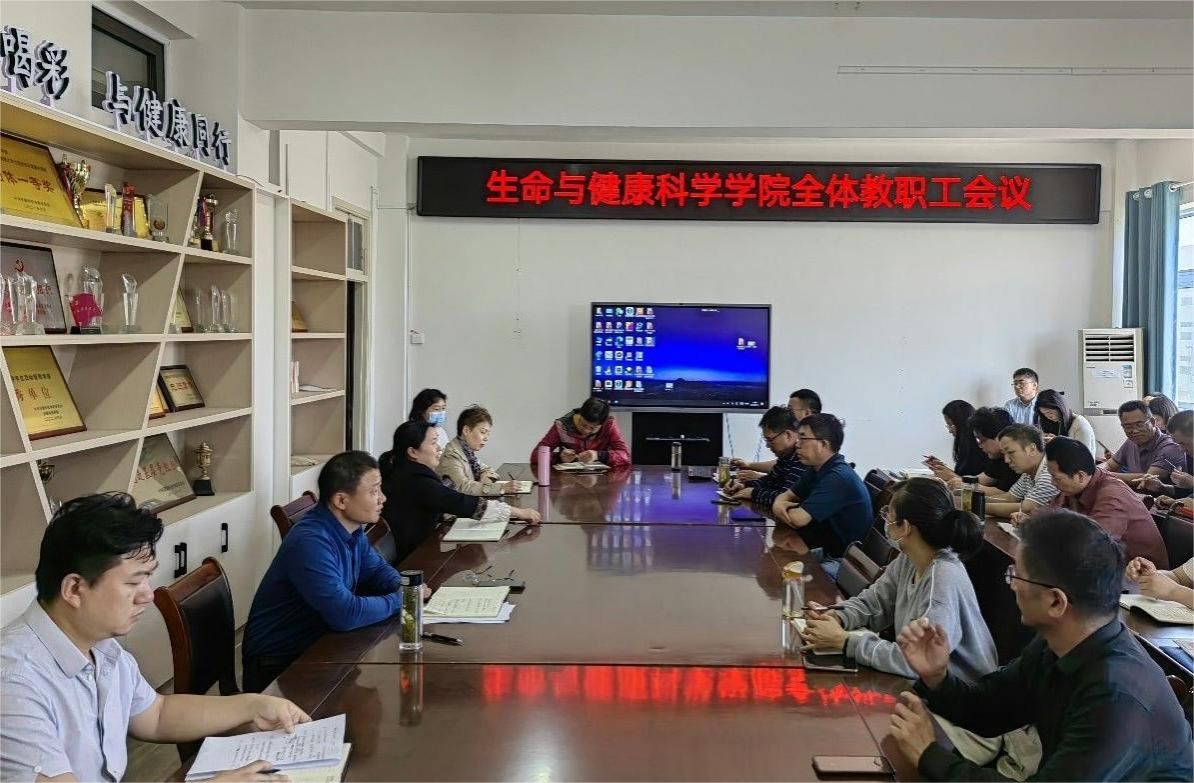 为做好本科教育教学审核评估入校评估工作,5月15日下午,生命与健康科学学院在学知楼417室召开全体教职工会议,传达有关会议精神,落实有关工作要求。会议由学院党委副书记、副院长(主持工作)钱立生主持。