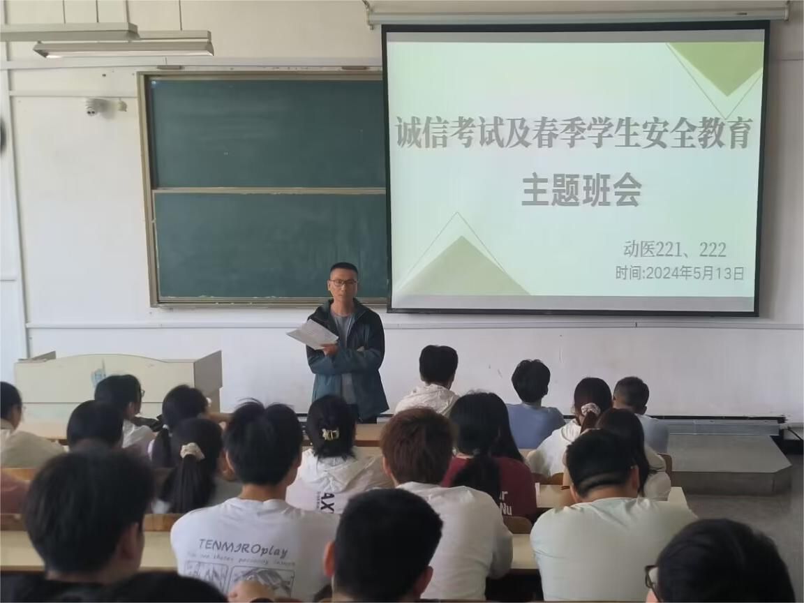 树道德之新风,立诚信之根本,是当代大学生义不容辞的责任。为严肃考风考纪,端正学生考试态度,增强同学们诚信文明意识,5月中旬,动物科学学院在全院范围内陆续开展诚信考试主题班会,会议由各班辅导员及学习委员主持。