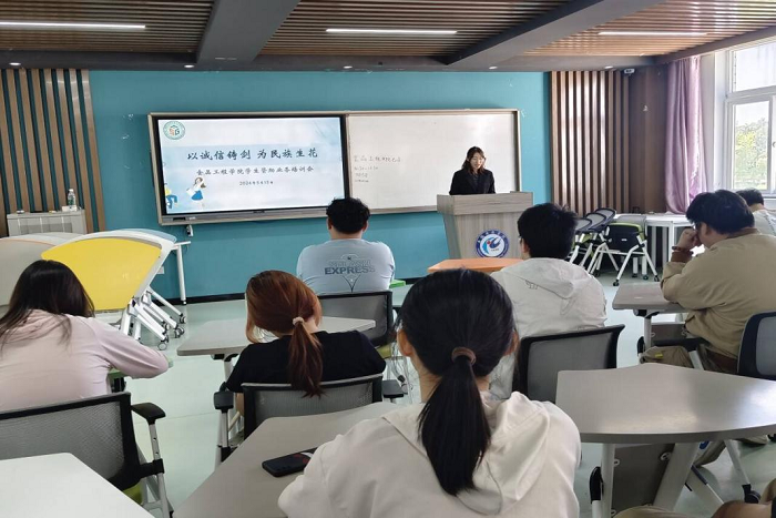 为进一步提升资助育人成效,促进学生增强诚信意识,5月17日下午,食品工程学院在求知楼B309召开学生资助工作专题培训会。会议由学生会权益维护部负责人郑秀文主持,学院资助联系指导老师吴玘参与指导,各班级生活委员参会。
