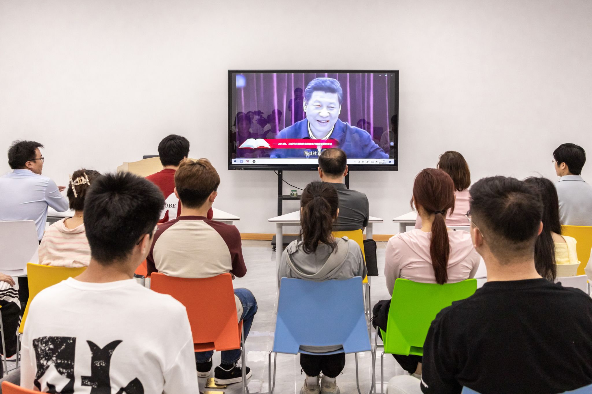 读书会上同学们集体观看了《习近平读书故事》系列视频,朱一、卢程龙、孙绍钧、赵明慧4位青年依次分享推荐了自己喜爱的书籍《习近平在正定》《习近平在厦门》《习近平扶贫故事》《习近平与大学生朋友们》等,并自书中节选“原汁原味”的习近平新时代中国特色社会主义思想,朗读经典篇章段落,各抒己见,引起了青年读者的强烈共鸣,现场不时响起热烈的掌声。