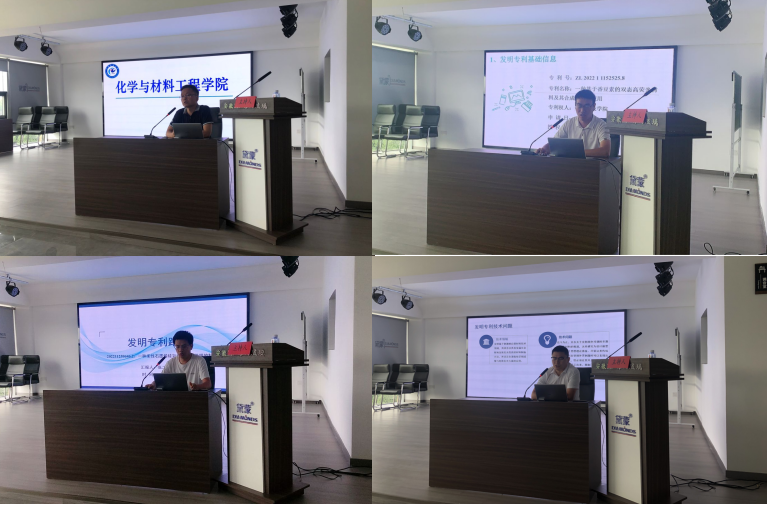 活动中,周永生代表学院学科团队向与会嘉宾作了介绍。四位老师则分别作了“一种高硼硅防火钢化玻璃及其钢化方法”、“一种基于香豆素的双态高荧光材料及其合成方法和应用”、“一种柔性石墨烯硅氧碳复合电极膜的制备方法”和“一种多刺激响应型材料及其制备方法和应用”等专利技术路演。