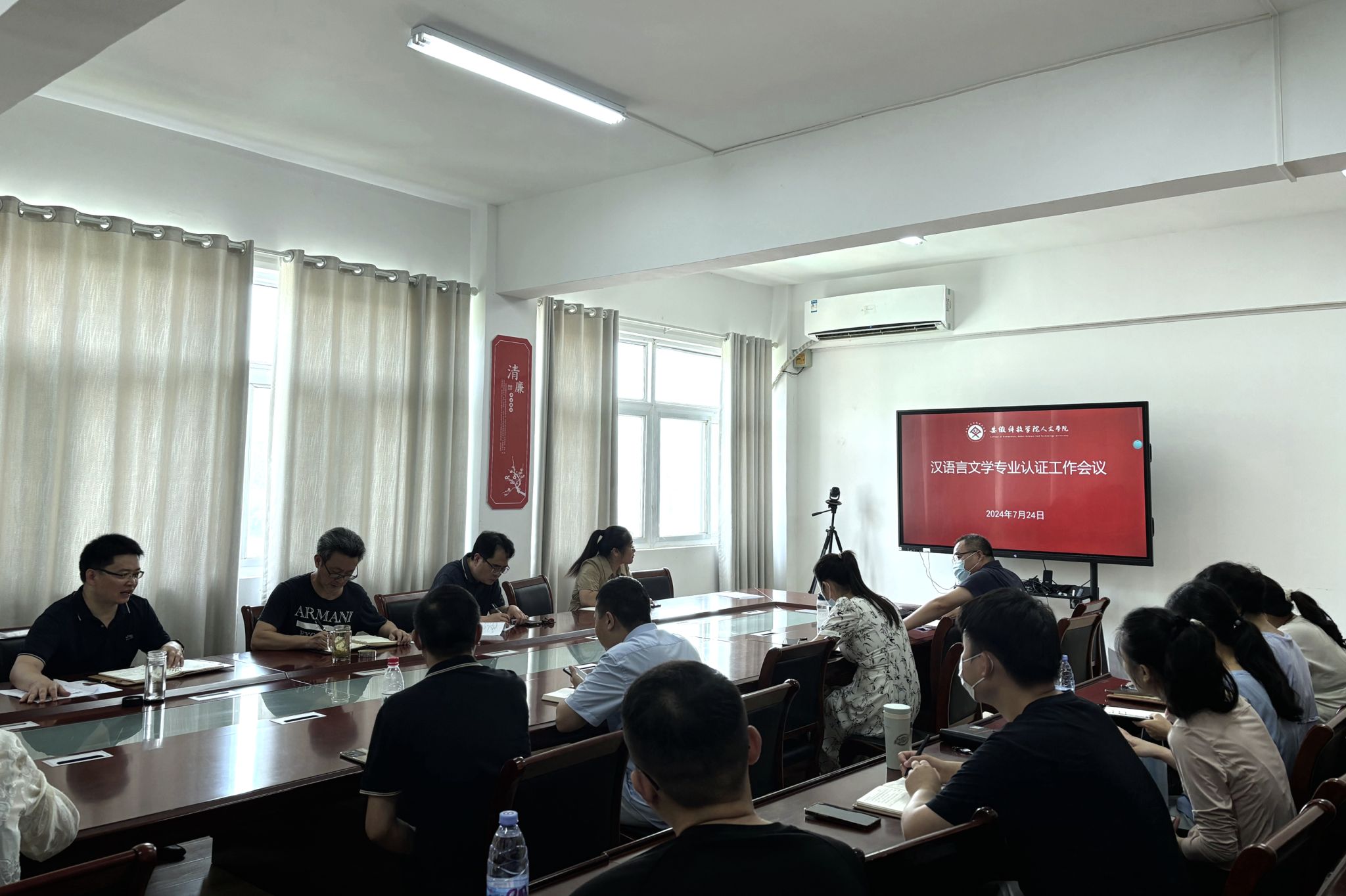 7月24日上午,人文学院在学院会议室召开汉语言文学专业认证工作会议。学院党政领导及汉语言文学专业认证工作组全体成员参加会议。会议由副院长牛永辉主持。