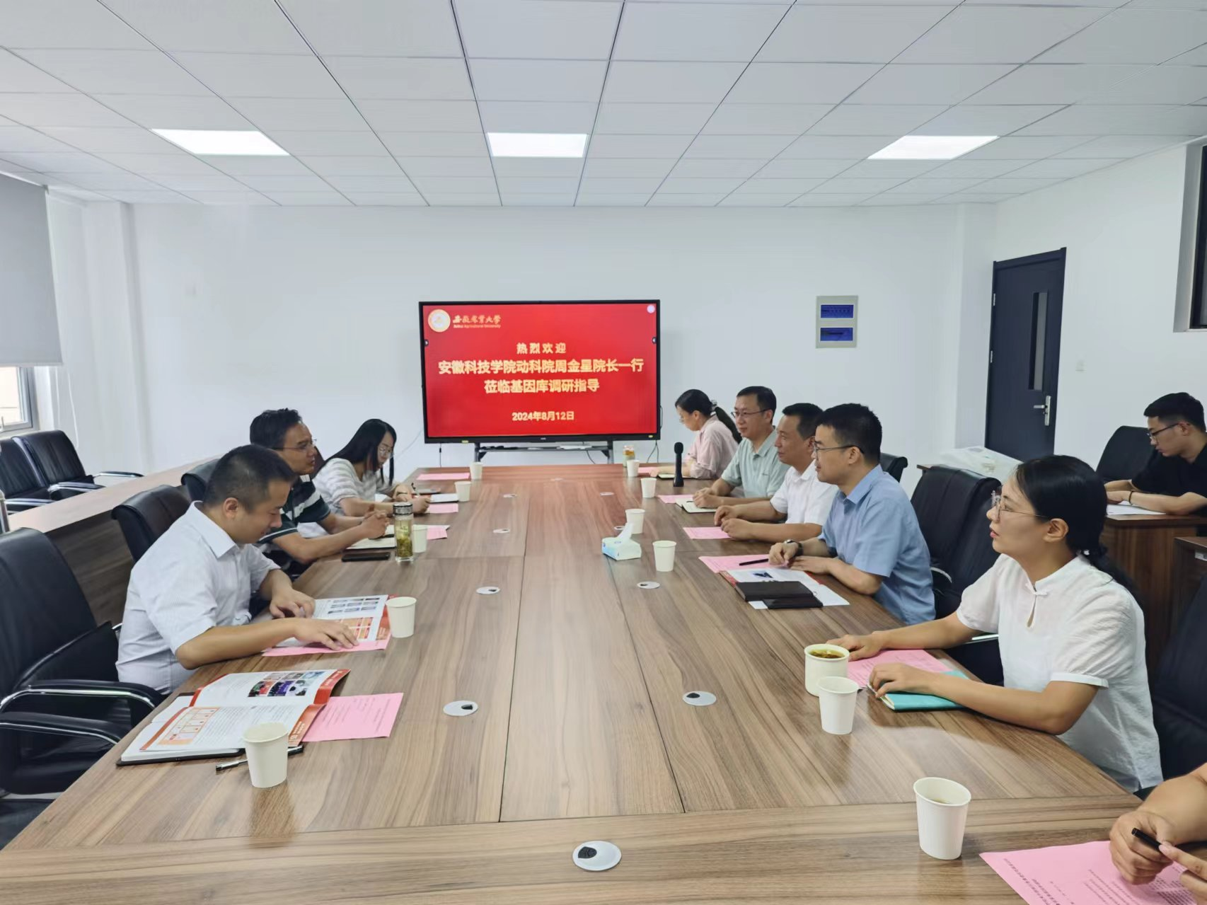 8月12日,动物科学学院党委副书记、副院长(主持工作)周金星一行到安徽农业大学动物科技学院中部地区畜禽遗传资源基因库和安徽省家畜基因库调研考察交流,安徽农业大学动物科技学院院长张子军,副院长凌英会、曹祖兵及相关教师参加交流会。