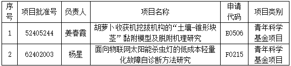 近日,国家自然科学基金委员会公布了2024年度国家自然科学基金项目评审结果,我校机械工程学院共获批国家自然科学基金青年项目2项,获批直接经费共计60万元,实现机械工程学院长久以来国家基金零的突破。