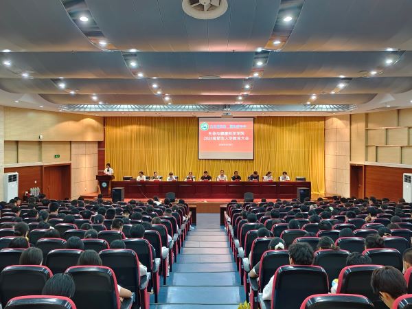 9月8日下午,生命与健康科学学院在会议中心二楼报告厅召开2024级新生入学教育大会。学院党政领导、工会主席、教研室主任及专职辅导员出席会议,来自全国各地的350名新生参加会议。会议由学院党委副书记(主持工作)、副院长张传德主持。