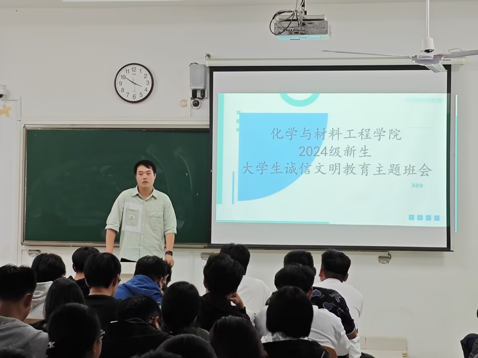 为培养学生的诚信意识和文明素养,10月30日,化学与材料工程学院举办了“诚信文明”主题辅导报告。学院专职辅导员宇春虎主讲。