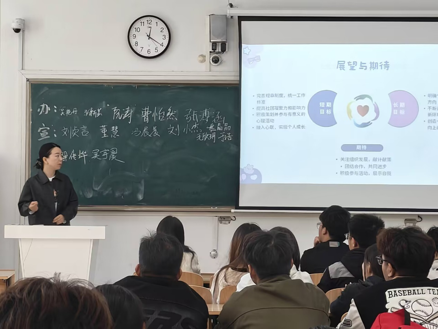 会上,心理委员联合会负责人详细阐述了心理委员的工作意义,详细介绍了心理委员的工作职责、心理委员联合会的组织架构以及职责分配,对近期工作进行了总结,指出了工作中的不足之处以及吸取到的经验,并对今后的工作做出了展望。