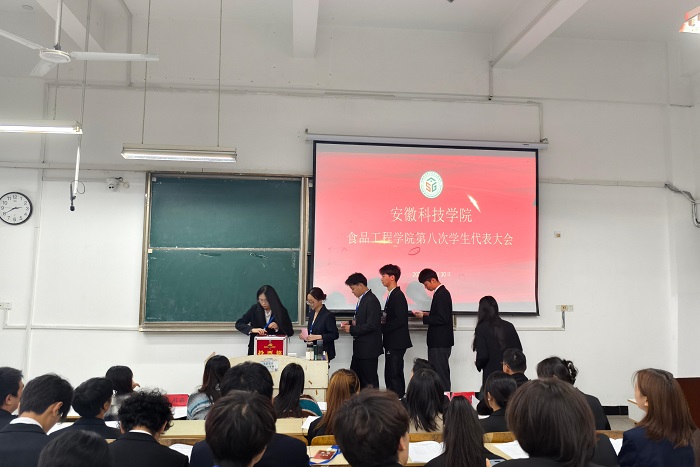 大会以无记名投票的形式选举产生了学院第八届主席团、第八届学生委员会以及出席安徽科技学院第十七次学生代表大会学生代表。