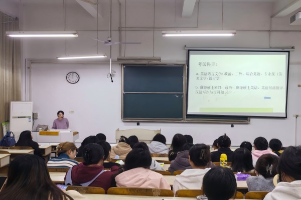 为帮助同学们更好地了解考研形势、尽早地明确考研目标,10月30日下午,外国语学院分别在求知楼A107和105教室分专业举办考研讲座。讲座邀请外国语学院衡鹏、孙玉梅两位老师主讲。学院党委副书记张海亮和2022级全体学生一同听取讲座,讲座由副科级辅导员张薇薇主持。