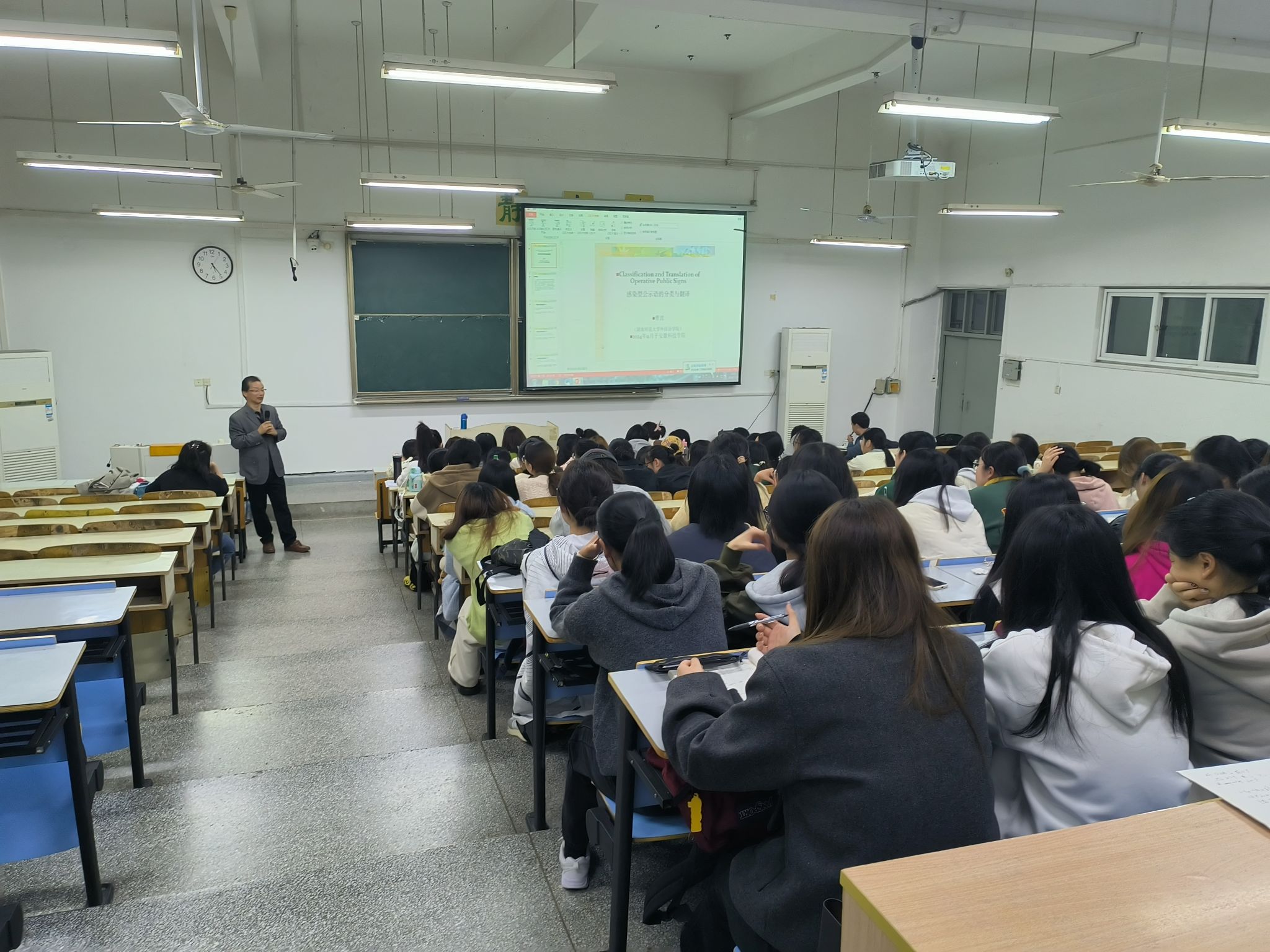 14日下午,曹波为外国语学院学生作了题为“感染型公示语的分类与翻译”的报告,报告由外国语学院副院长邓兆红主持。曹波指出,国内对感染型公示语的类型学考察存在缺陷,提出了自己的分类,强调其翻译应遵循通俗、准确和简约三项原则,以交际翻译为基本策略,同时传递源文本的感染功能。