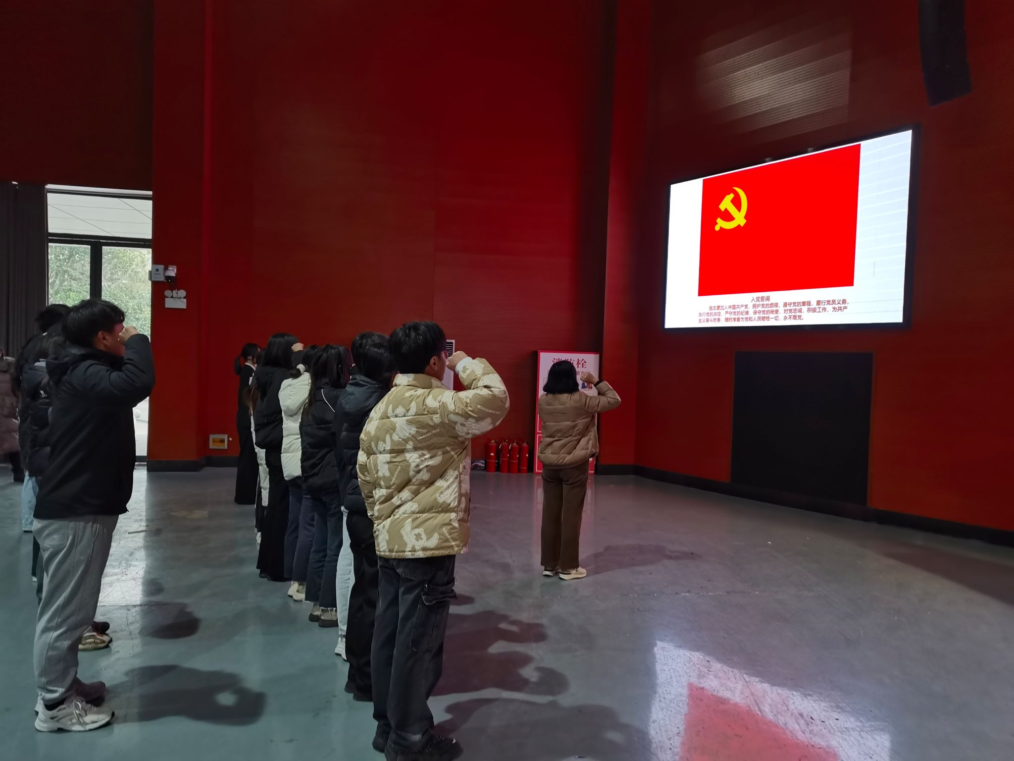 会上,王传林宣读了学院2024年下半年新发展党员名单,参会领导为新发展党员佩戴党员徽章。在彭丽萍带领下,全体新发展党员面向党旗,举起右拳,庄严宣誓,以铮铮誓言表达对党的无限忠诚和为共产主义事业奋斗终身的坚定信念。