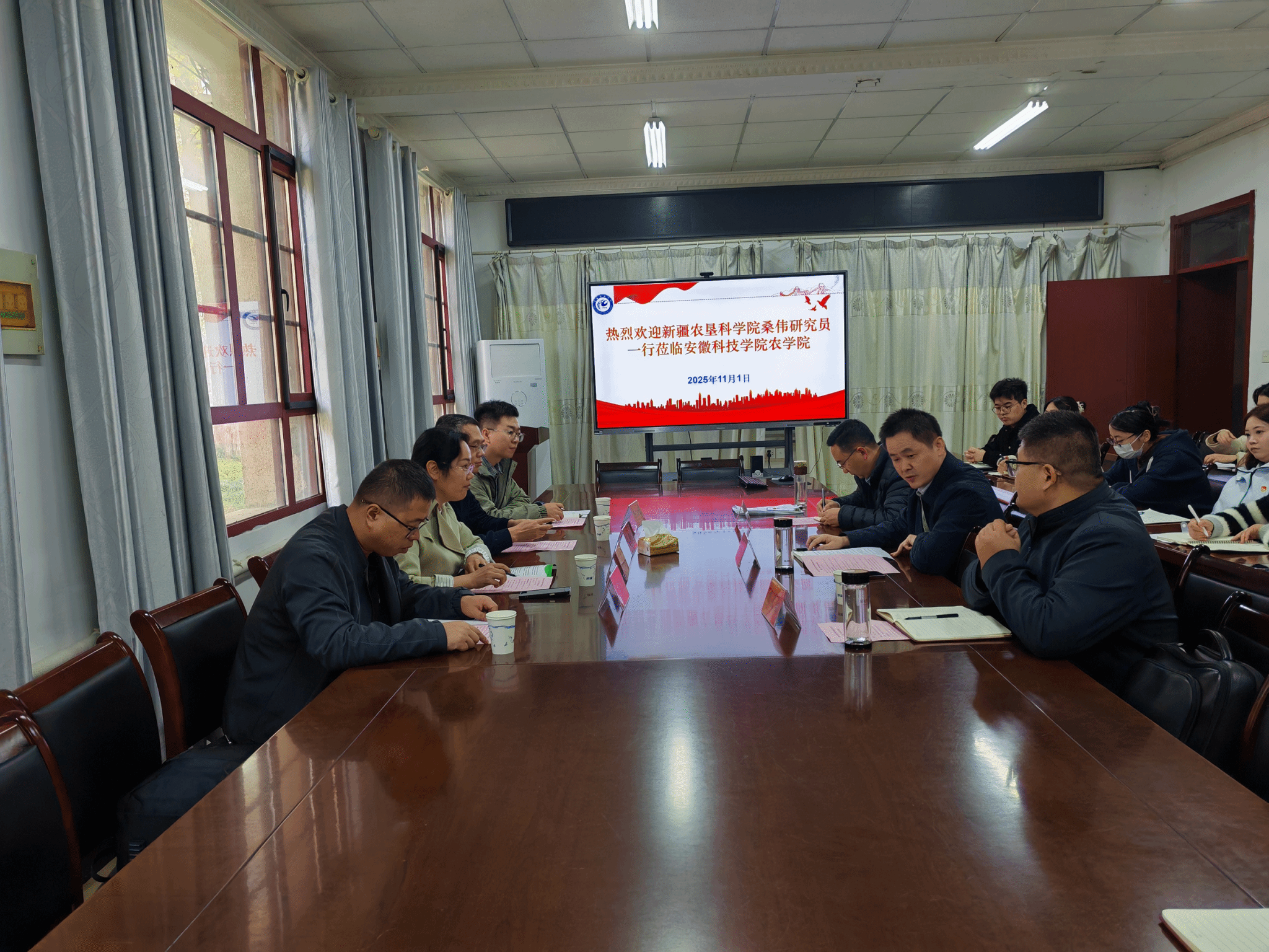 11月1日上午,新疆农垦科学院作物研究所副所长桑伟研究员,聂迎彬研究员、刘鹏鹏副研究员、李江博助理研究员等来校开展调研交流,农学院党委副书记(主持工作)唐仁生、农学院副院长李文阳、农学院研究生党支部全体党员和入党积极分子参加交流会。交流会由唐仁生主持。