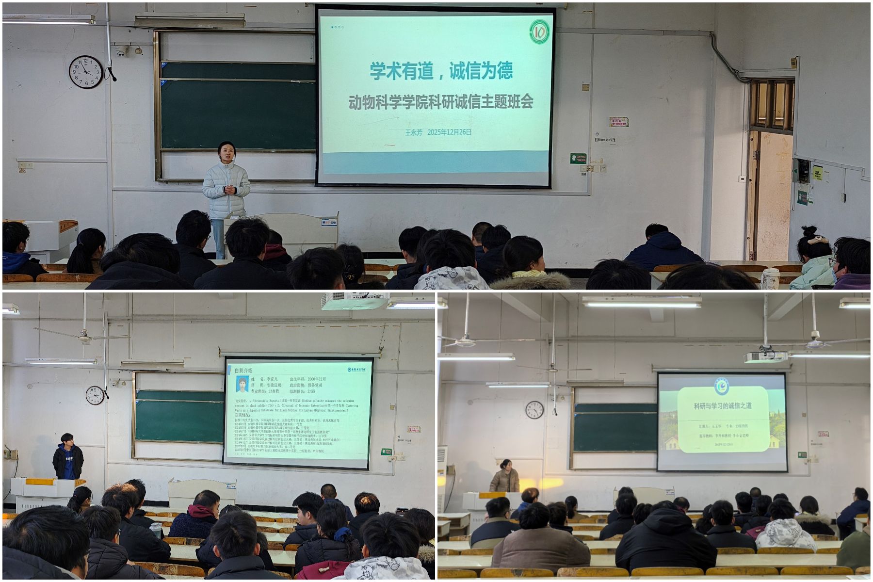 这一系列活动的开展,标志着动物科学学院科研诚信与作风学风建设宣传周的扎实推进。通过制度学习、警示教育、榜样引领、专题报告等多维度举措,学院不仅强化了研究生和导师的学术规范意识,更搭建了优质的交流学习平台,营造了潜心向学、风清气正的科研环境。未来,学院将持续探索创新科研诚信教育与学风建设长效机制,助力研究生在学术道路上稳步前行,成长为兼具卓越专业素养、坚定道德操守与强劲创新能力的动科英才,为加快实现高水平科技自立自强贡献坚实力量。(特约通讯员:闫宁 摄影:孙超凡 审核:周金星 甘宗平 编辑:李锦)