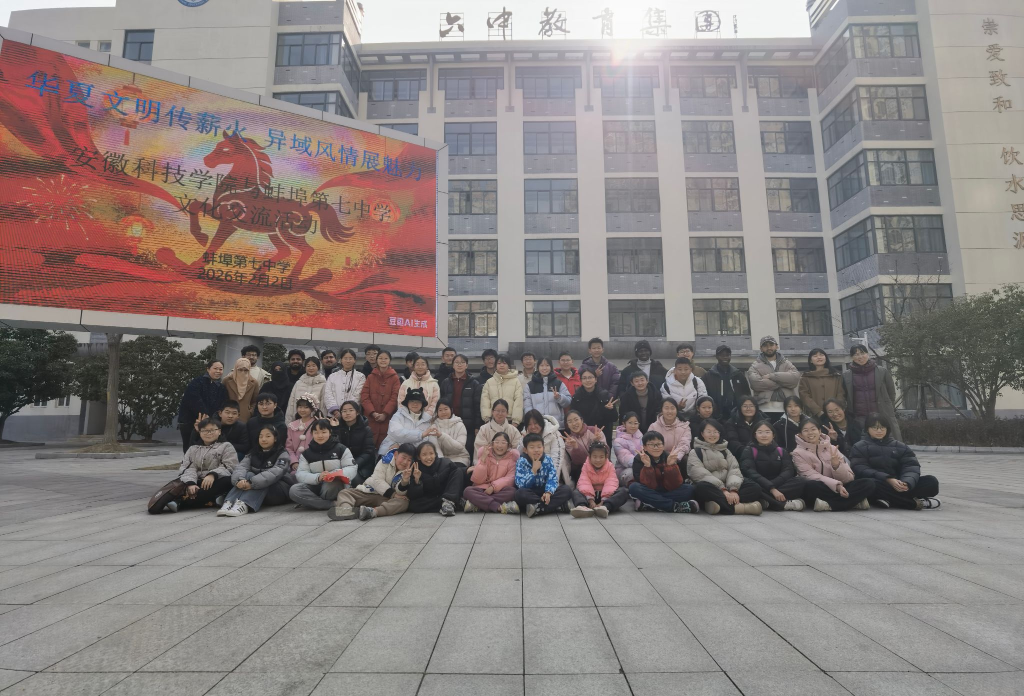 为丰富留学生的寒假生活,加强中外文化交流,打造“留学安科”文化品牌,2月2日,在国际交流与合作处处长何世潮等老师的带领下,我校组织留学生走进蚌埠第七中学,开展“异域风情展魅力,华夏文明传薪火”中外学生文化交流活动。