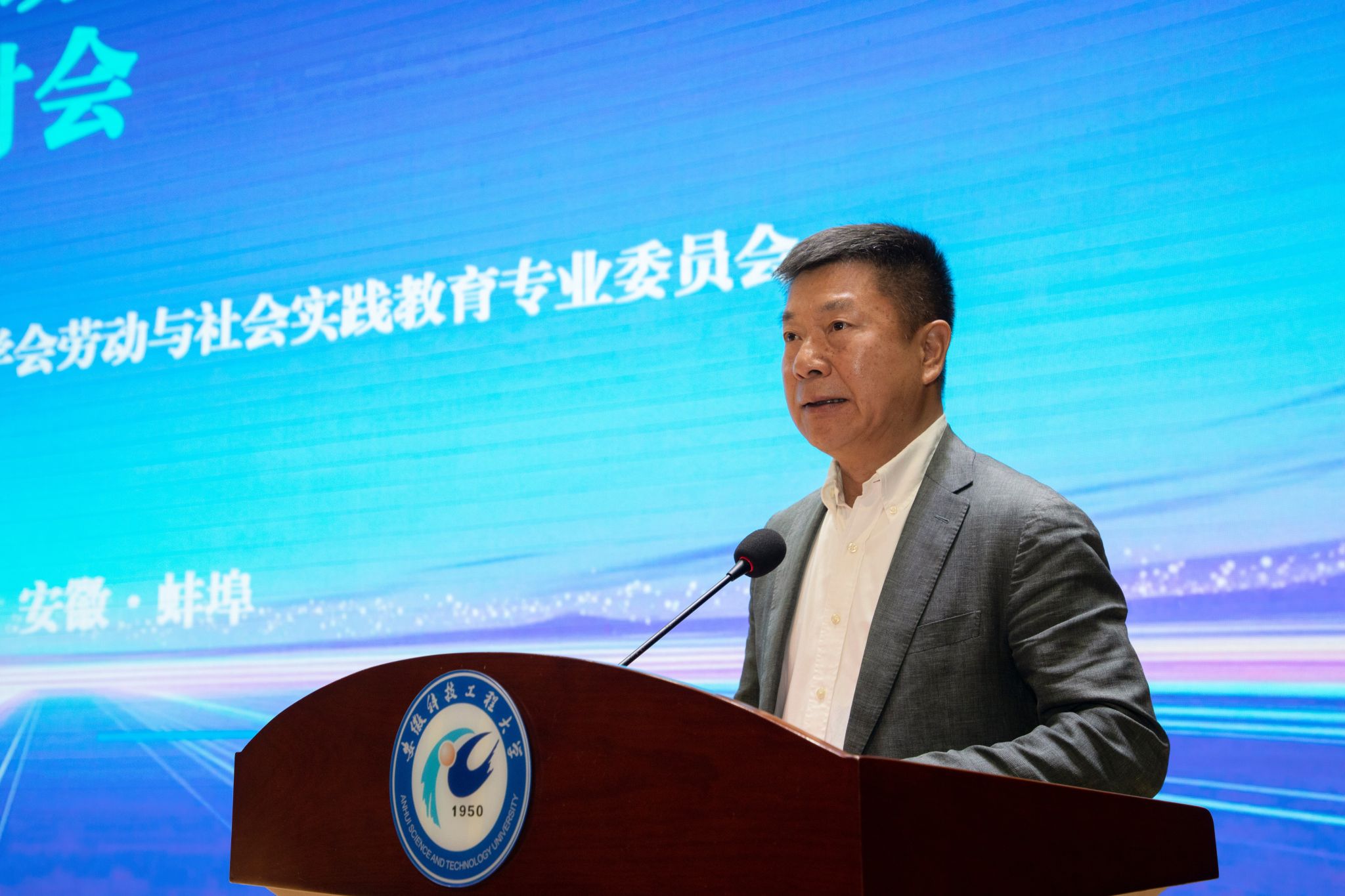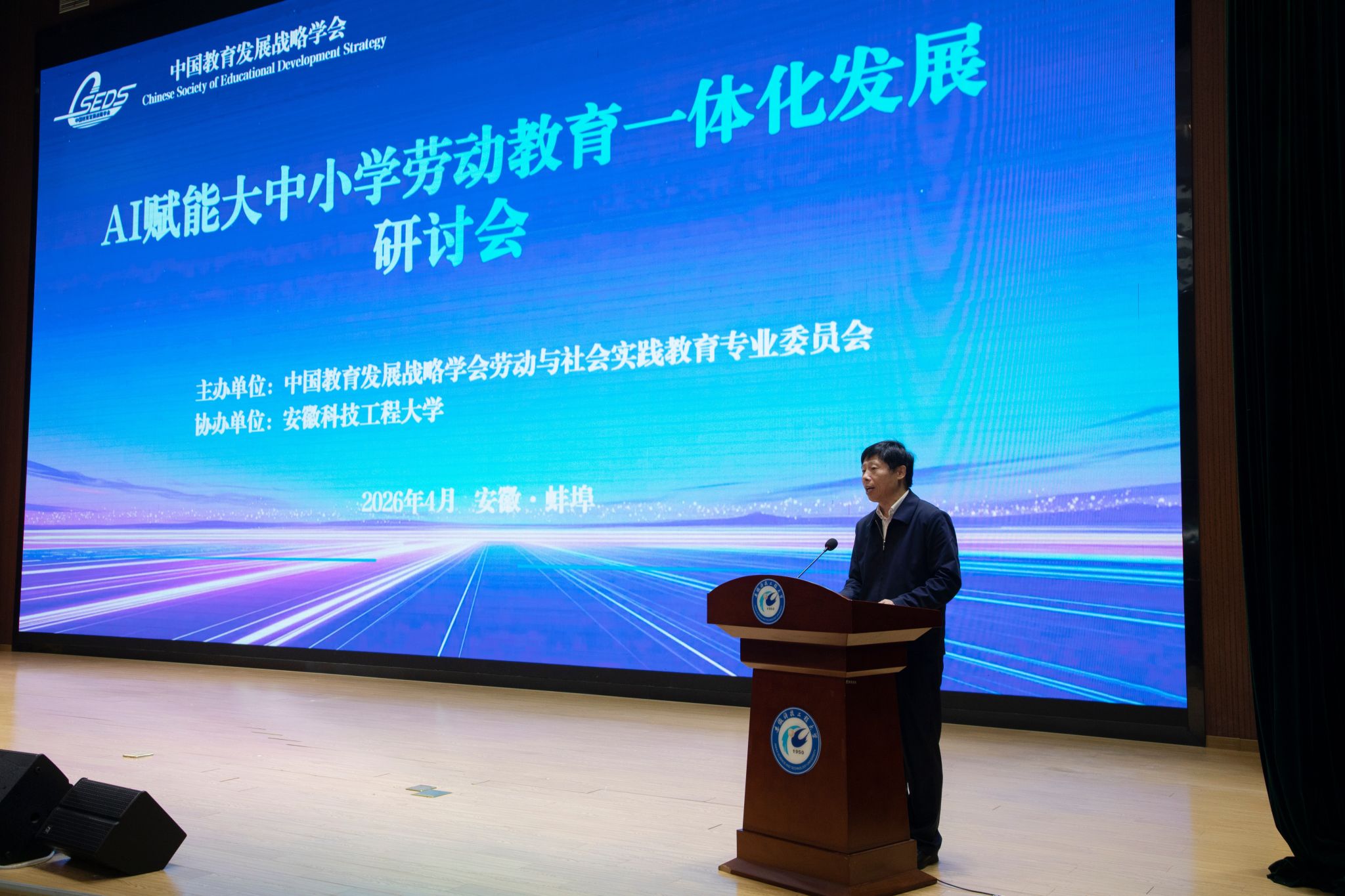 4月18日上午,研讨会正式开幕。开幕式由中华职教社原党组书记、总干事方乃纯主持。校党委书记时伟在欢迎辞中介绍了学校76年办学历程、应用型办学定位与劳动教育特色实践,表示学校将与各界携手推动劳动教育高质量发展。安徽省教育厅二级巡视员周晓芹介绍了安徽省劳动教育与 AI 融合应用的推进成效,就深化理论研究、强化学段协同、夯实师资保障等方面提出要求。中国教育发展战略学会常务副会长兼秘书长柯春晖强调要坚守育人初心、深化一体化建设、强化协同共建,共同打造可复制可推广的实践样板。