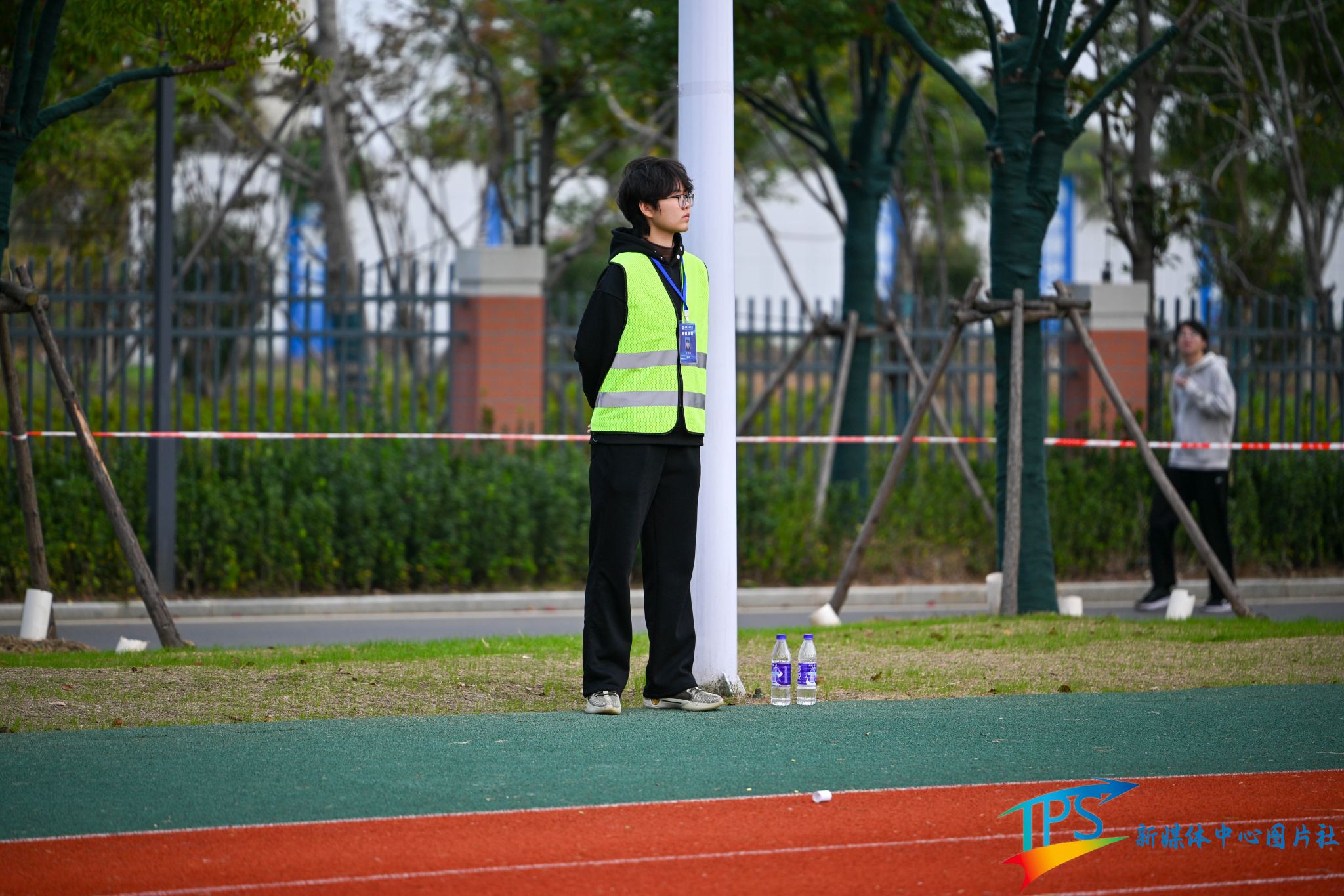 志愿者是赛场边的守护者,用行动传递温暖。他们是幕后最坚韧的支柱。赛道旁,他们提前到场清理跑道,平整沙坑;观众席旁,他们耐心维持现场秩序。他们的身影像一束束暖光,默默照亮赛场的每一个角落。