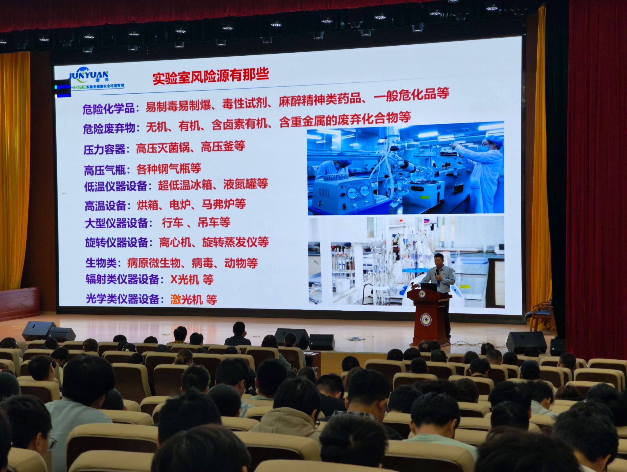 我校应用化学专业2005级优秀校友、江苏君源LAB-HSE实验室健康安全环境管理创始人屈俊勋受邀进行培训。屈俊勋作为国家安全一体化会员,国家安全防护与应急管理专委会委员,中国灾害防御协会应急急救工作委员会专家库成员,拥有十余年实验室安全防护与应急管理工作经验,他通过生动案例和详细讲解,系统介绍了实验室安全特别是危化品安全知识以及实验室安全事故预防安全管理应急处置方法与技巧,提升了师生对实验室安全的认知水平,强化了师生安全意识和应急能力。