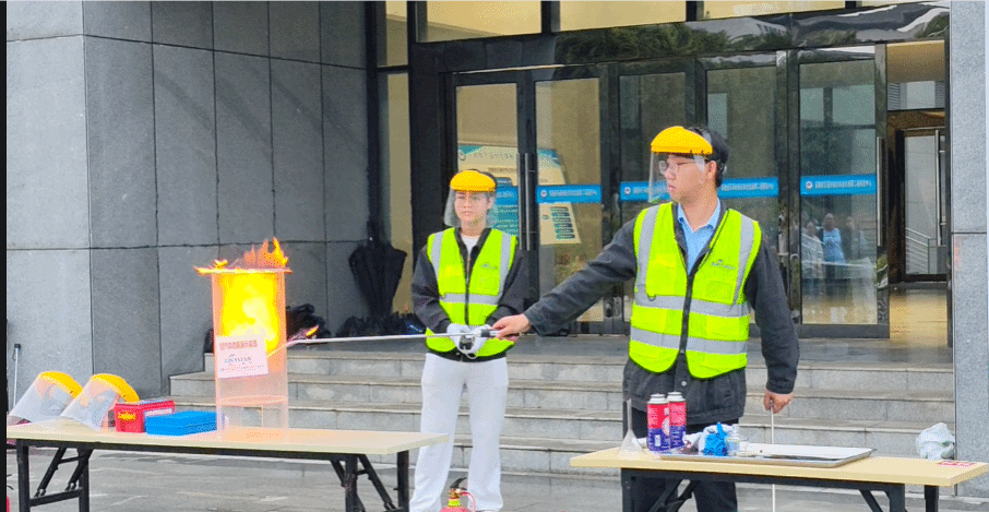 实验室安全应急演练环节模拟了易燃易爆气体燃爆、挥发类有机试剂爆燃、酒精灯着火、危险化学品泄漏等场景,示范人员通过现场演绎,讲解了灭火毯、灭火器等应急处置器材和防护设备的使用方法,演示了泄露现场隔离处置具体流程等,深入剖析了场景演绎过程中的安全问题,让师生在“沉浸式”体验中提升了实操能力。