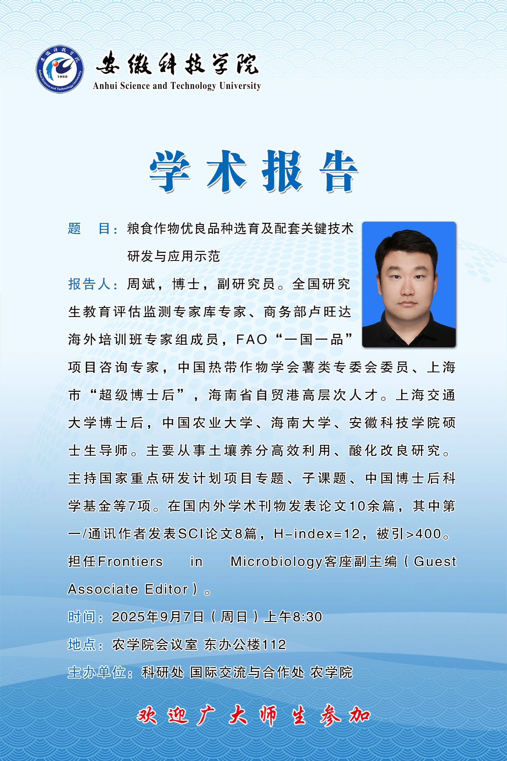 【日期:2025年09月05日 17:05 单位:科研处 农学院 作者:钱晶晶】