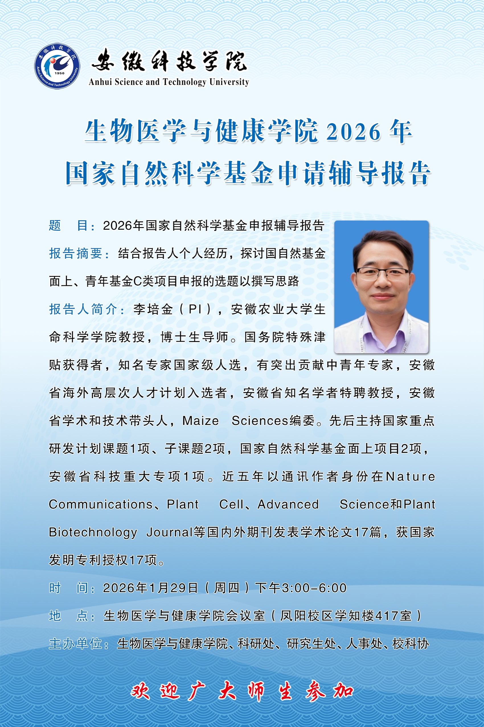【日期:2026年01月27日 10:28 单位:科研处 生物医学与健康学院 作者:钱晶晶】