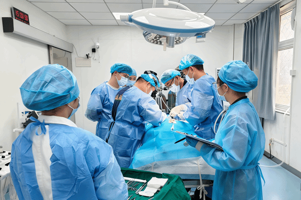 项目实施过程中,双方团队充分发挥各自领域专长,形成了“临床技术引领+麻醉技术保障”的协作模式。从术前实验方案的细化研讨,到术中操作的无缝衔接,再到术后样本采集与超声检测,双方人员打破专业壁垒,分工协作,出色完成整个手术流程。深圳市第四人民医院团队凭借深厚的临床外科功底,由赵立奇医生主刀完成血管定位、材料植入等关键操作,以精准稳健的手术技艺保障了移植操作的规范高效。手术台上,范恒华与赵立奇全神贯注,从消毒铺巾到缝合关腹,每一个动作都精准规范,最长一场手术持续了将近7小时,仍以“零差错”为目标完成每一项操作。贺绍君教授团队依托该校教学动物医院平台,由丁金雪博士带领团队成员提供专业的麻醉、动物生理监护等技术,从气管插管到生命体征监测,每一步都为手术安全筑牢防线。团队成员时刻紧盯心率、血氧、体温等生命体征,精准调控麻醉药物剂量,全力保障实验猪的生理体征稳定。团队成员全程密切配合术者开展操作、分工明确,严格按照手术节奏协助暴露视野,配合牵拉,辅助剪线等操作,以严谨细致的作风保障了手术流程的顺利进行。术前、术中、术后丁金雪运用超声技术实时检测血管吻合口血流情况,清晰地检测到颈动脉血管腔血流通畅,为试验的初步成功提供了直观依据。截至目前,四例血管移植实验猪各项生命指征正常。