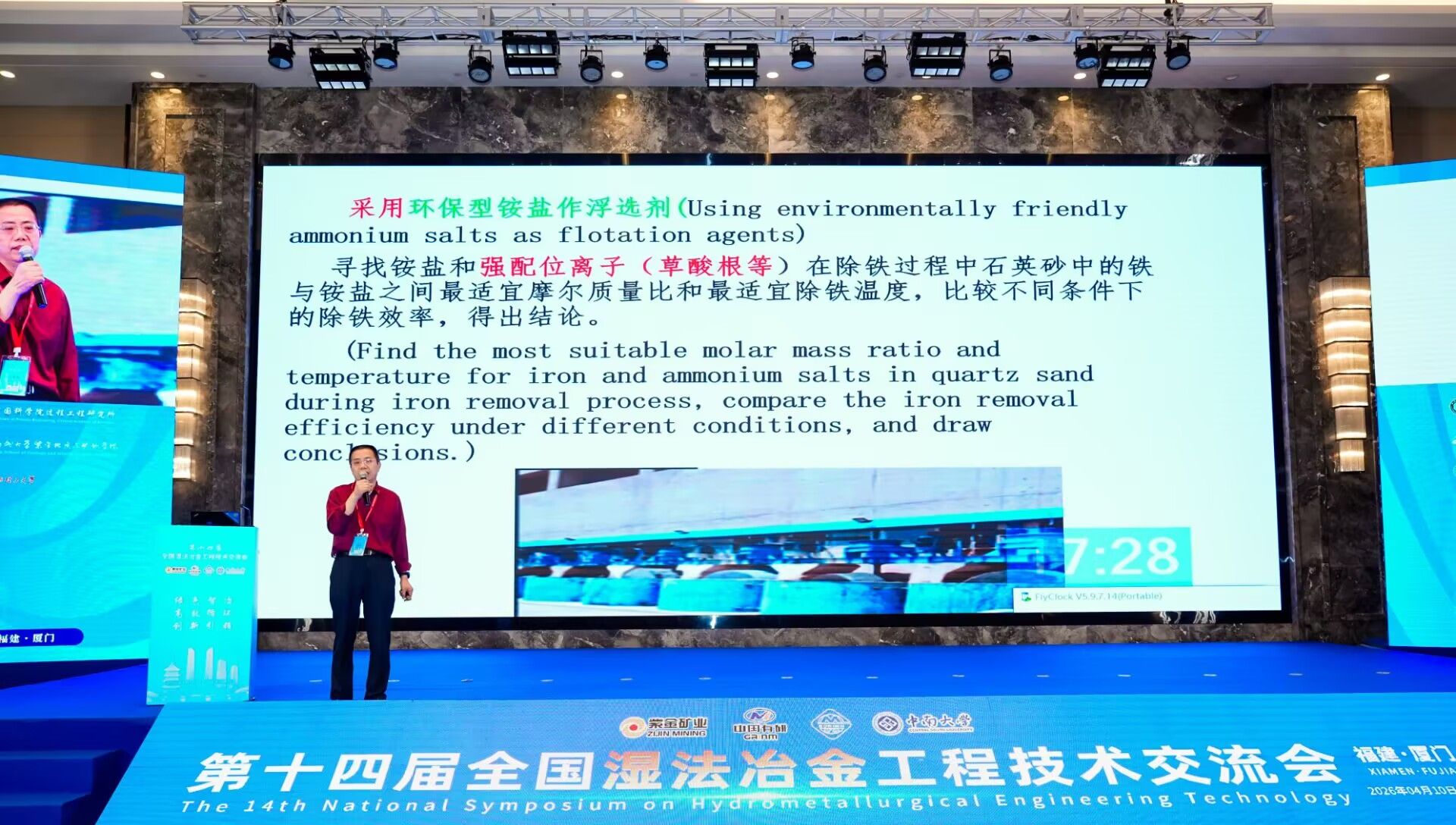 4月10日至12日,由我校参与共同承办的第十四届全国湿法冶金工程技术交流会在福建厦门召开,安徽省石英砂纯化和光伏玻璃工程研究中心主任汪徐春教授应邀参会,并作主题报告。
