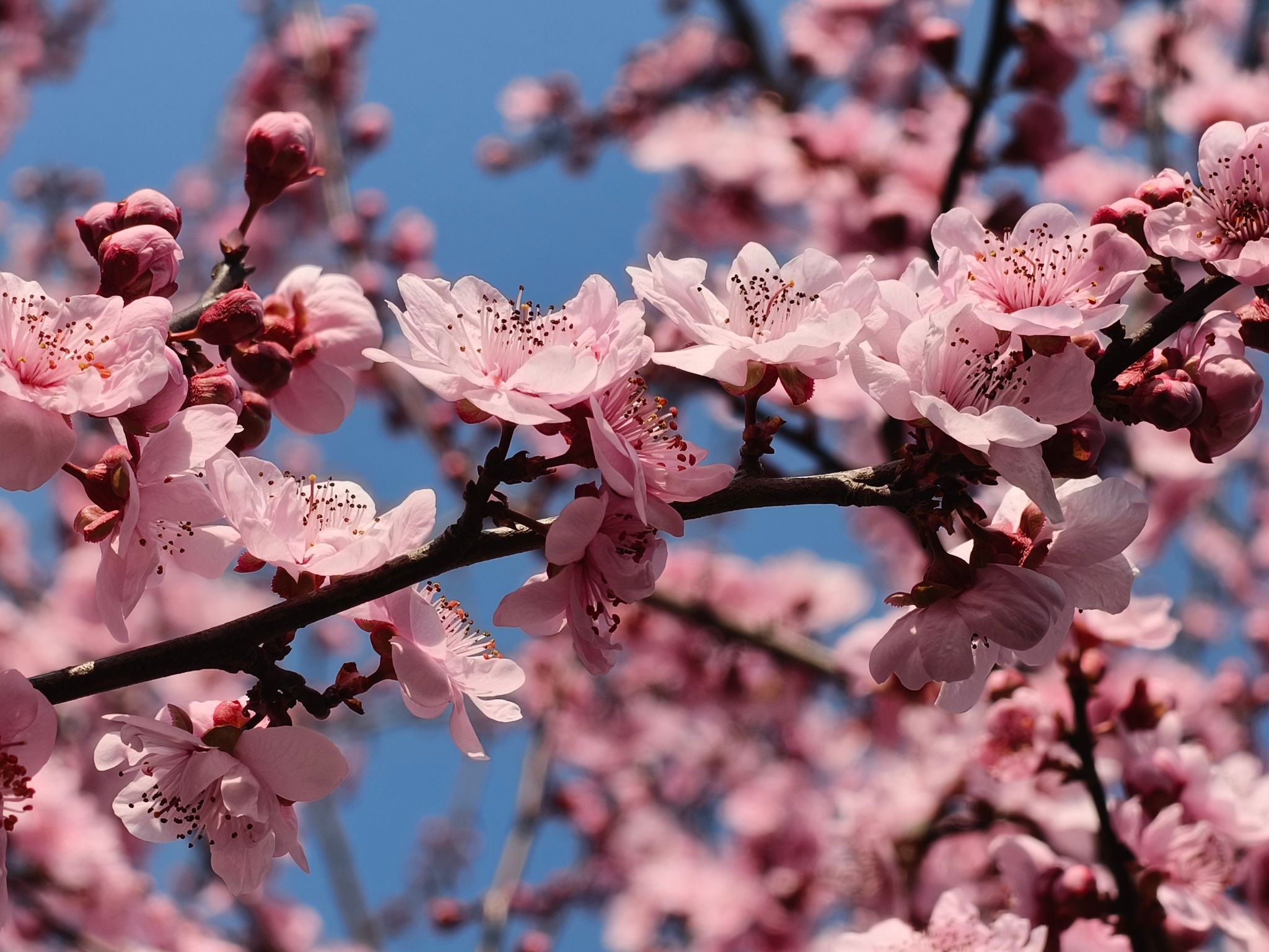 风携粉香过枝桠,晴蓝作幕,晕开一帧春日诗行。