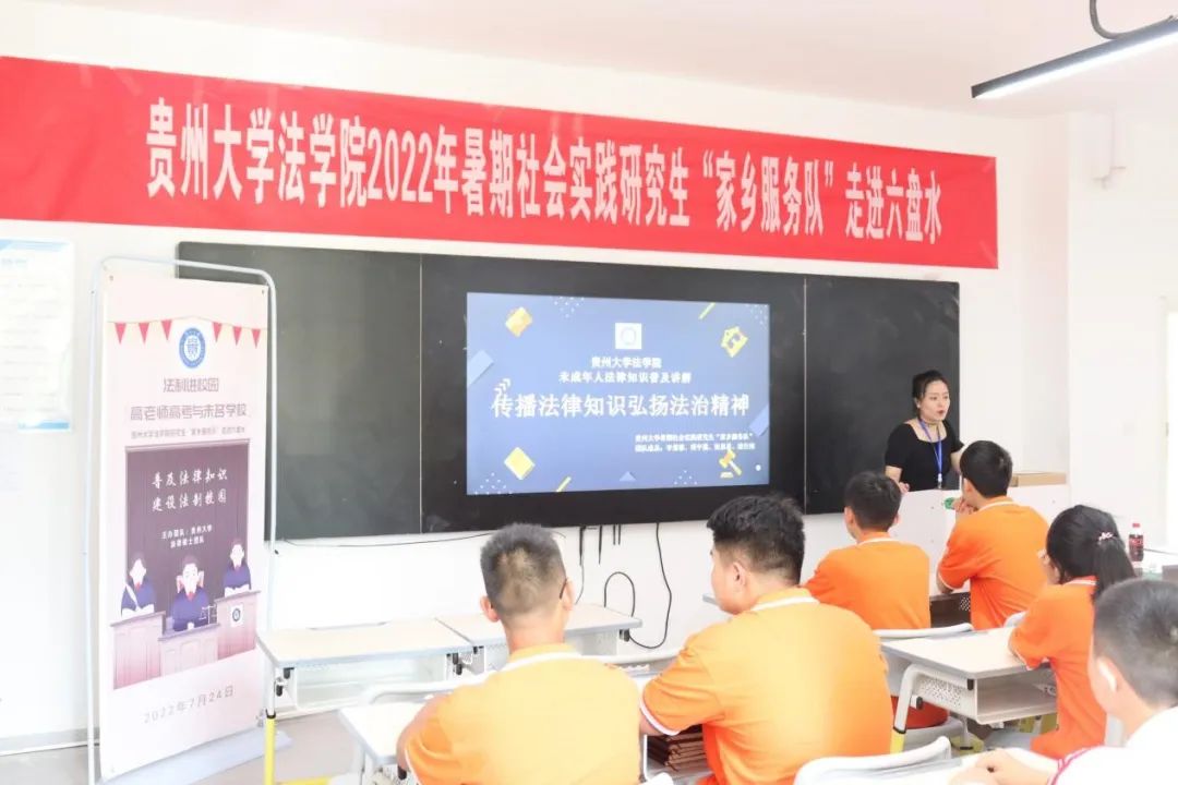 7月24日,贵州大学法学院“家乡服务队”研究生李景馨、张思思、浦仕刚、周宇慧在六盘水市钟山区高老师高考与未名学校开展普法宣讲活动。校长高秀兰老师热情迎接并贴心接待实践团成员。本次活动学校高度重视,班主任黄谦老师、校长高秀兰老师多次关心并积极参与其中,提醒同学们注意夏季防暑和实践过程中的安全问题。