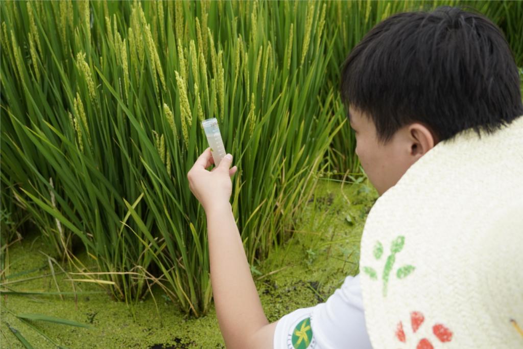 绿水青山就是金山银山,改善生态环境就是发展生产力。团队成员前往当地水稻种植区,利用电导率仪、溶氧仪等对稻田内水质进行检测,同时采取土壤、水分等样品带回学校实验室,测定分析其元素构成并形成专业的检测报告反馈给当地有关部门,为农民合理施肥施药提供建议,助力当地农业绿色发展。