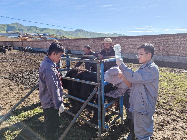 为了推动甘南州乡村战略的实施,目前累计组建牦牛畜群40余个,共计约20000头雌性牦牛。团队在甘南州诊治牦牛产科疾病、皮肤病、产道细菌感染、中毒病、代谢病及关节炎等1000余头,累计出诊1000次,巡回诊疗里程超12万余公里。建立能繁母牛放牧+舍饲的饲养模式以及标准化断奶犊牛舍饲模式。团队解决当地草地功能衰退问题,对受损的草场进行修复及复播,清理牦牛粪便,建立爱护母亲河行动示范基地。