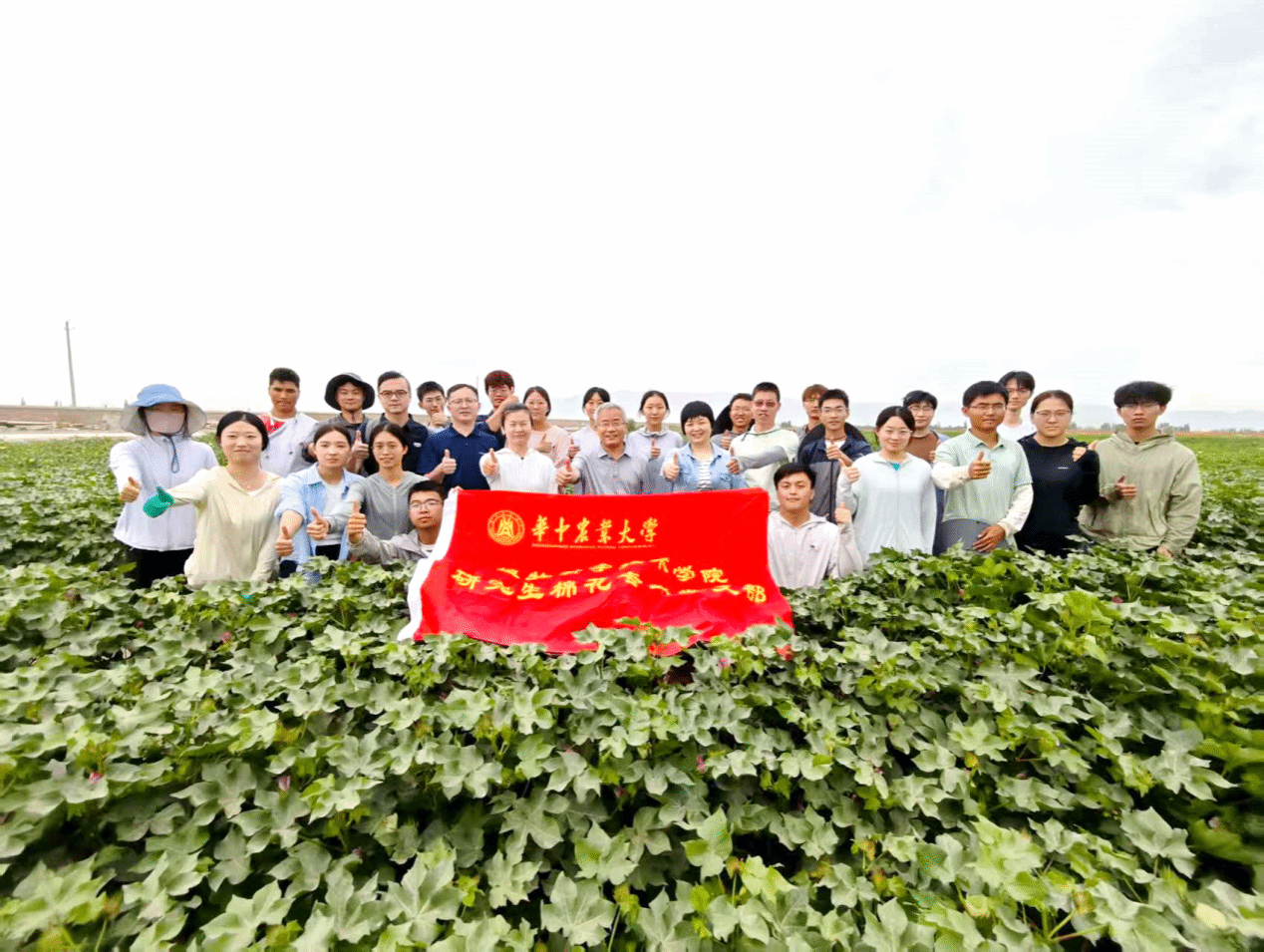 今年暑期华中农业大学棉花育种科技志愿服务团二十余名师生在新疆库尔勒长绒棉育种家基地进行了长达两个月的科技助农活动。他们顶着骄阳,在炎夏的棉田中穿梭,采集实验样品、测量数据、开展田间杂交试验,以“把论文写在大地上”的信念,在这片炽热的土地上攻克棉花产业关键技术难题。中国工程院院士、华中农业大学植物科学技术学院教授张献龙专程赴基地指导,为团队成员注入攻坚克难的动力。